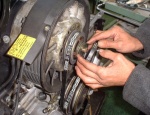 2.プーリーのナットを取り外す