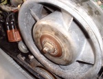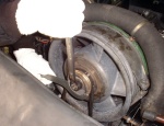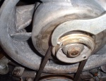 調整用シムを取り付け、年式が古いタイプだとプーリー面が錆びている事もあるので細目のペーパー(#320~)等で磨き、新しいベルトを取り付けて張りを調整してから完成です。