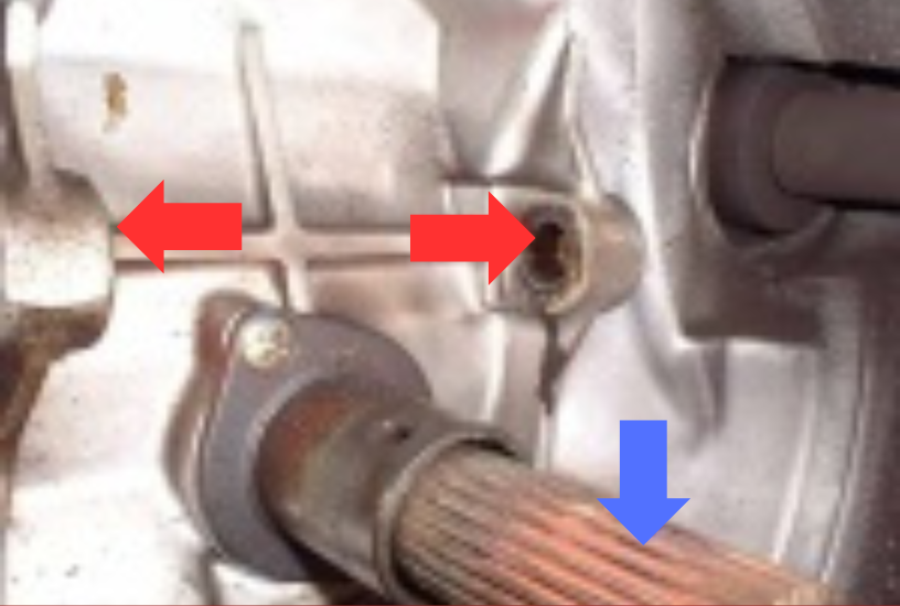 写真の赤矢印がレリーズホークシャフトベアリングです。