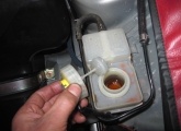 Brリザーブタンクの中のフルードが真っ黒だったので、沈殿物が溜まってBrマスターシリンダーやABSユニットが詰まって、止まれなくなりますよ」
